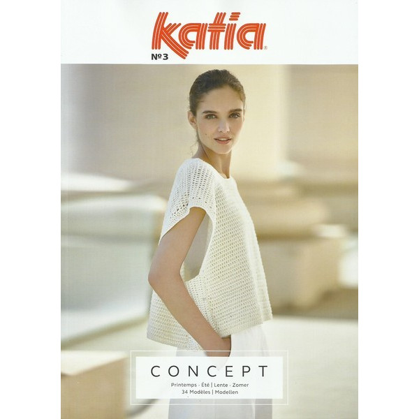 Catalogue concept n°3 collection katia Printemps Eté 2017. 34 créations pour femme printemps été à découvrir avec les laines coton Katia Concept : ALL SEASONS COTTON, COTTON CASHMERE, SILK COTTON, COTTON YAK, SIKY LACE et AIRE.