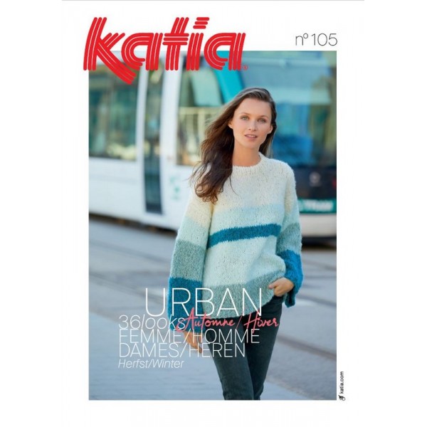 Catalogue Urban n°105 collection katia Automne Hiver 2020 / 2021. 36 créations femme et homme Automne Hiver à découvrir avec les laines Katia: PERLINE, SUPREME MERINO, SOFT GRATTE, MOUTON, SCANDINAVIA, INGENUA MODA, TWINS, AZULEJO, MERINO SPLASH, MERINO ARAN, BASIC MERINO, MERINO 100% CRAFT, LAPONIA, MERINO FLAME, MERINO SHETLAND, PRIME MERINO, MERINO TWEED, BIG MERINO, AZTECA INFINITY et SHADOW.