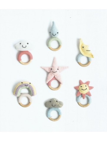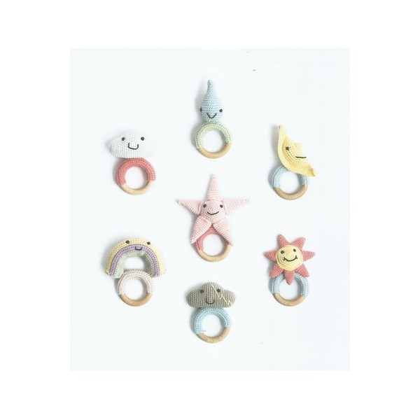 Catalogue Ricorumi For Babys In The Sky collection Rico Design toutes saisons 2018 -2019. 7 modèles pour crocheter anneaux de dentition et mobile pour bébé.