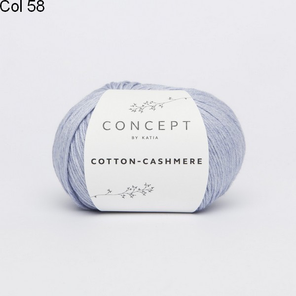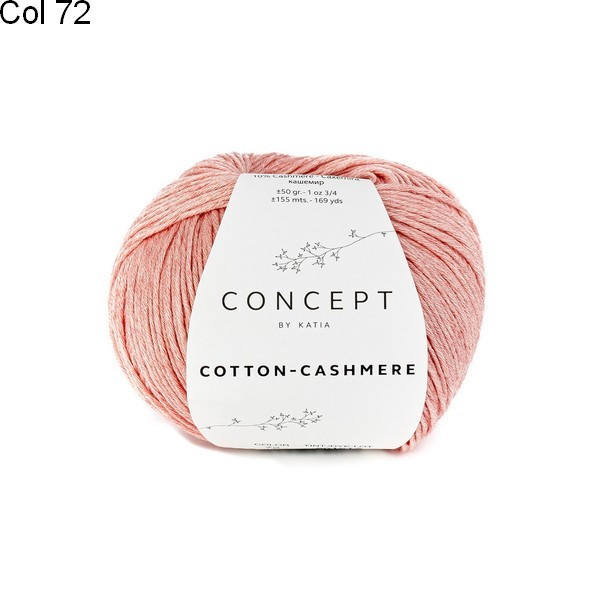 Laine Katia Coton Cotton Cashmere est un fil constitué de 90% de coton et 10% de cashmere. Grace au cashmere, il donnera à votre ouvrage une très grande douceur.