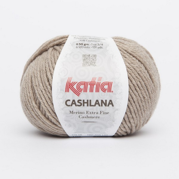 La laine Katia Cashlana est un fil constitué de 45% de laine merino extrafine, 10% de cashmere, 15% de polyamide et 30% de viscose. Un fil multibrins léger donnant du volume, aux couleurs mates.
