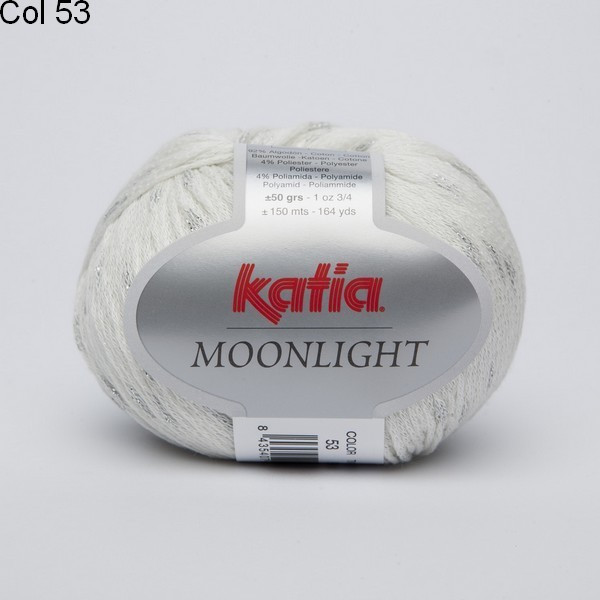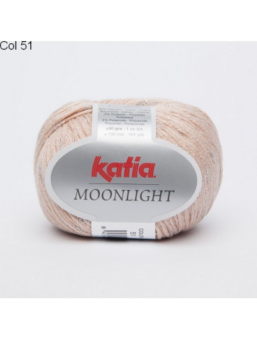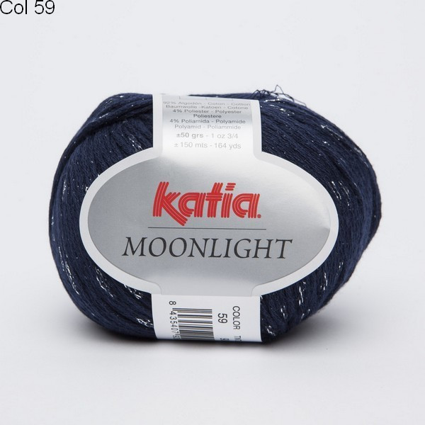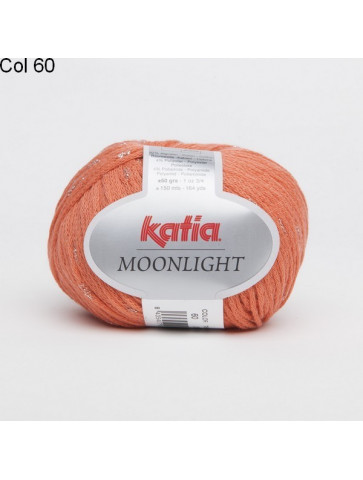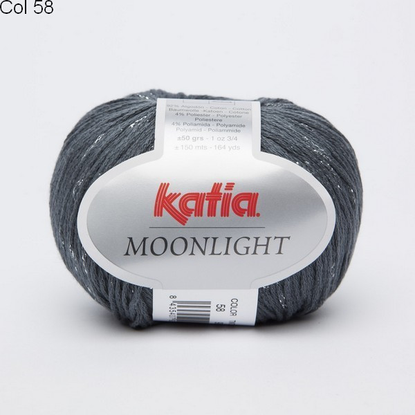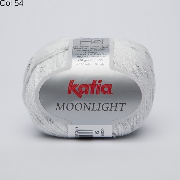 La laine Katia Coton Moonlight est un fil constitué de 92% de coton, 4% de polyamide et 4% de polyester. Fil tubulaire avec des touches de fil métallique brillant, léger avec des reflets brillants.