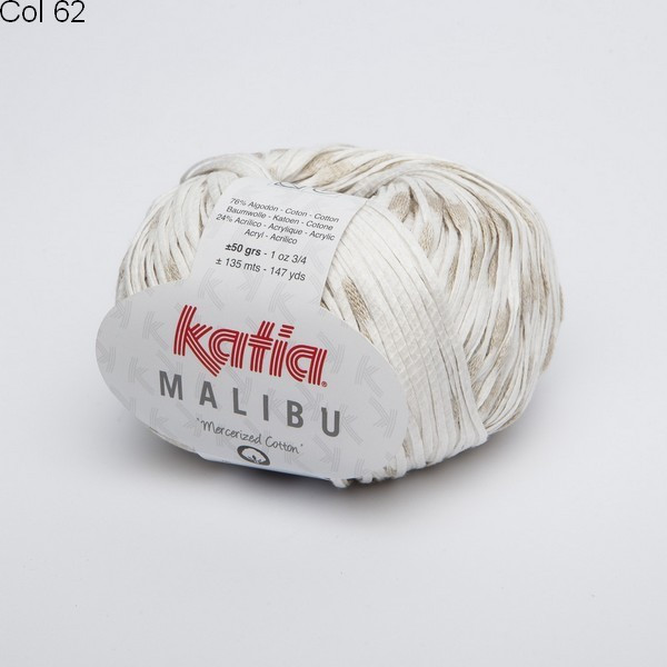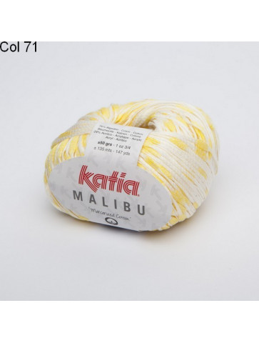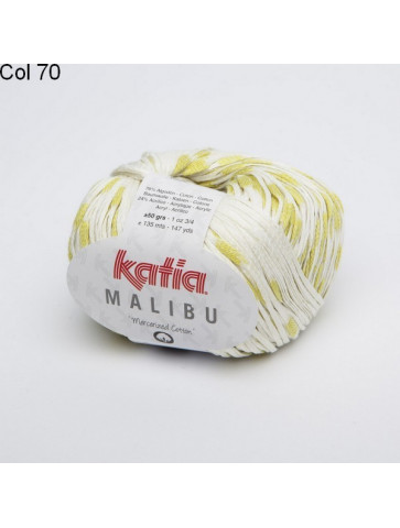 La laine Katia Coton Malibu est un ruban constitué de 76% de coton peigné et mercerisé et 26% d'acrylique. Ruban plat avec des touches de couleur à distances irrégulières. Au toucher très doux à tricoter comme à porter.