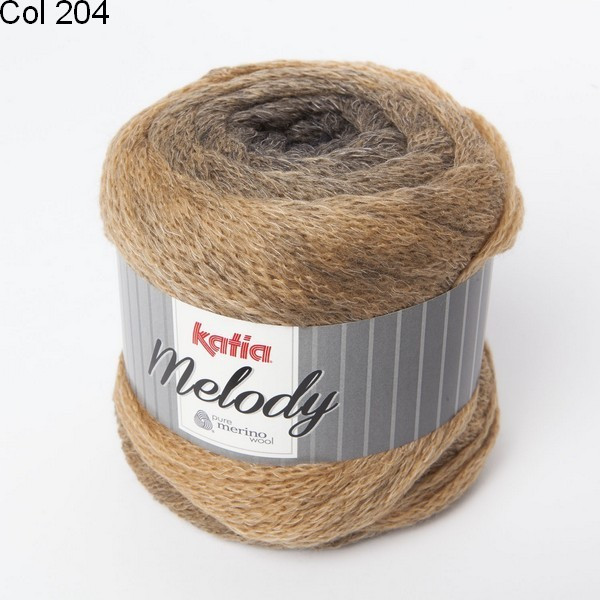 La laine Katia Melody est un fil constitué de 90% de laine merino et 10% de polyamide. Un fil avec un joli dégradé de couleur donnant un ouvrage moelleux, léger et agréable à porter.