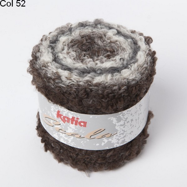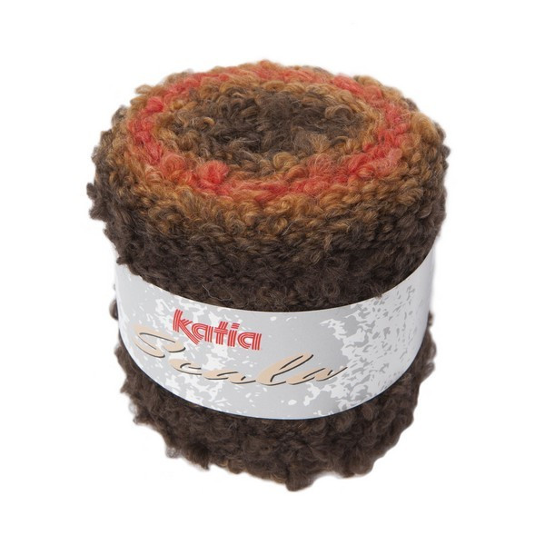 La laine Katia Scala est un fil constitué de 65% d'acrylique, 20% de laine et 15% de polyamide. Un fil bouclé avec un joli dégradé de couleur. Le dégradé est identique à toutes les pelotes.