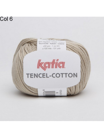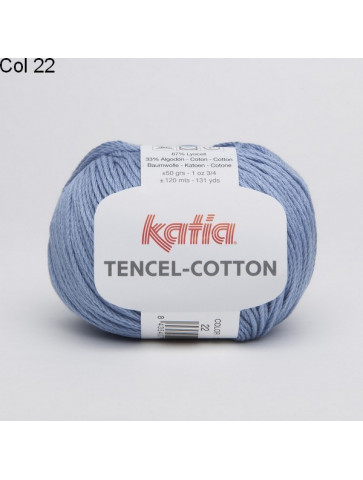 Laine Katia Coton Tencel Cotton est un fil uni constitué de 67% de tencel pulpe de bois d'eucalyptus et 33% de coton. Très doux au toucher, respect les peaux sensible et régule la transpiration.
