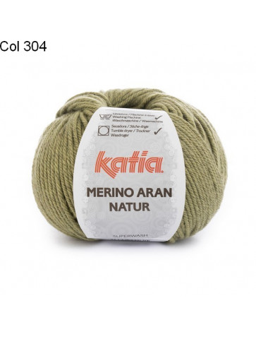 La laine Merino Aran Natur de Katia est un fil constitué de 52% de laine mérinos superwash et 48% d'acrylique, Un fil uni aux couleurs d'automne, donnant un tricot doux et chaud.
