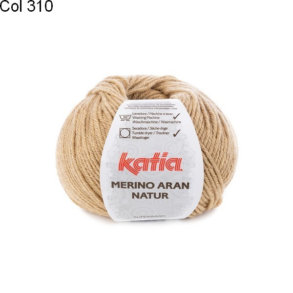 La laine Merino aran Natur de Katia est parfaite pour tricoter et crocheter col, pull, gilet et veste pour toute la famille.