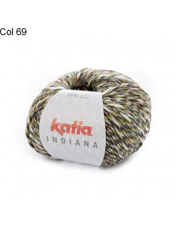 La laine Idiana de Katia est un fil constitué de 60% d'acrylique et 40% de coton, Un fil multi brins torsadés aux couleurs chinées et gaies, donnant un effet doux au touché.