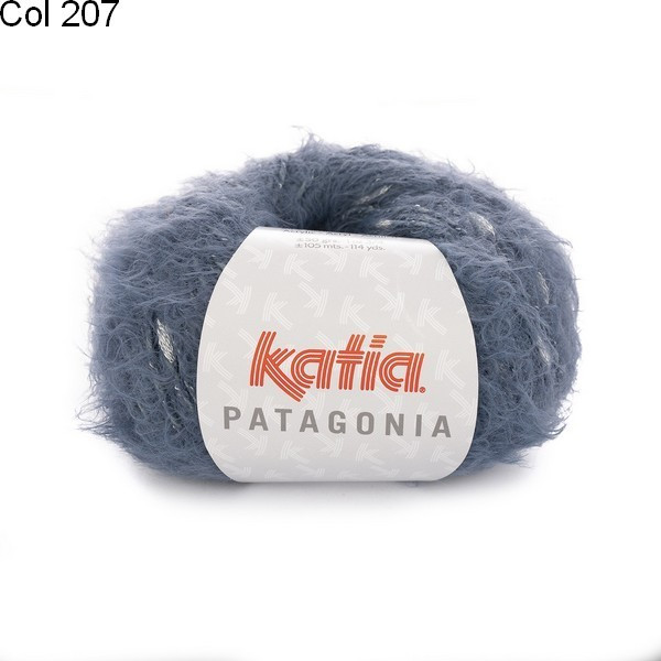 La laine Patagonia de Katia est un fil constitué de 76% de polyamide et 24% d'acrylique, Il est poilu entouré d’un fil avec de pastilles irrégulièrement disposées, cela apporte une jolie fantaisie à l'ouvrage.