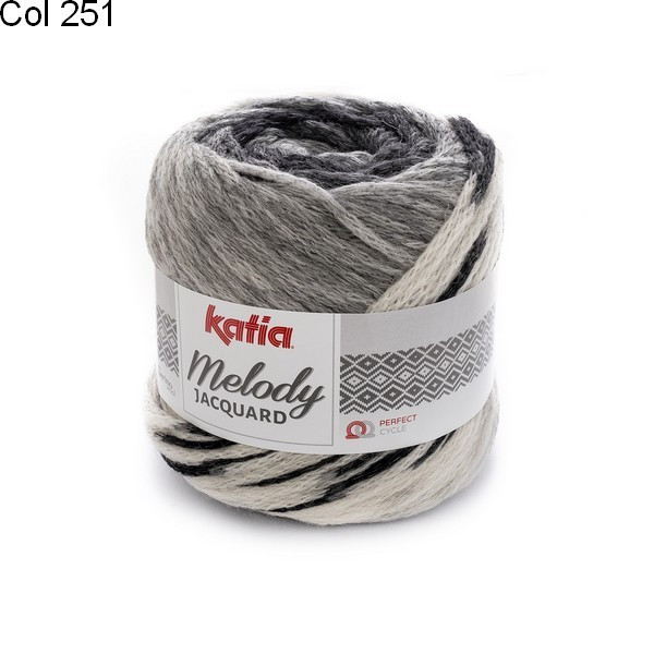 La laine Katia Melody jacquard est un fil constitué de 90% de laine mérinos et 10% de polyamide. Un fil tubulaire en forme de chaînette formant à la fois un dégradé de couleur puis un jacquard donnant un ouvrage très moelleux.