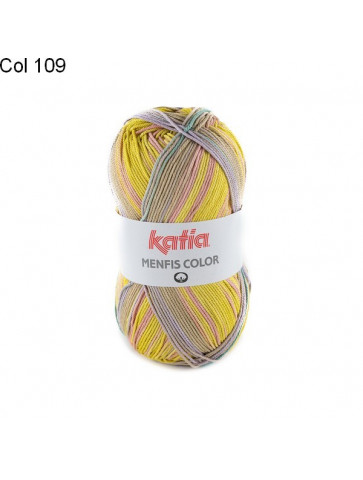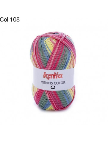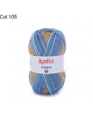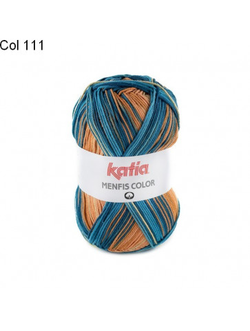 Laine Katia Coton Menfis Color est un fil constitué de 100% de coton d'Egypte. Fil multi-couleurs formant des rayures irrégulières, doux et confortable à porter