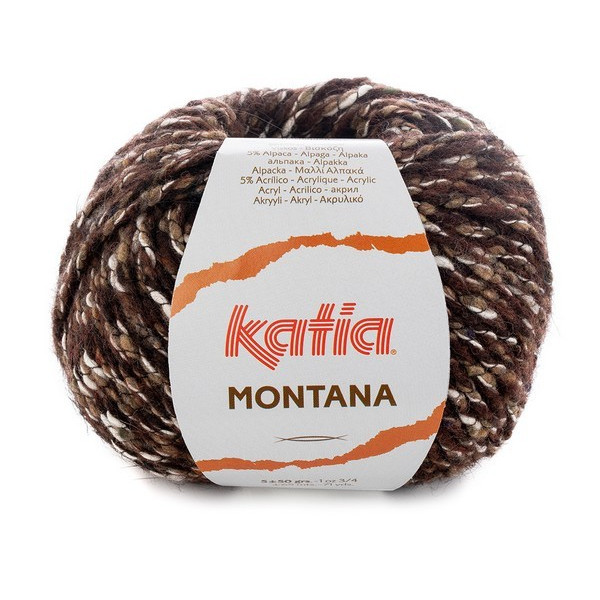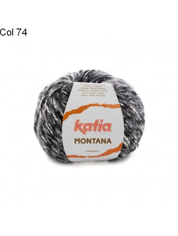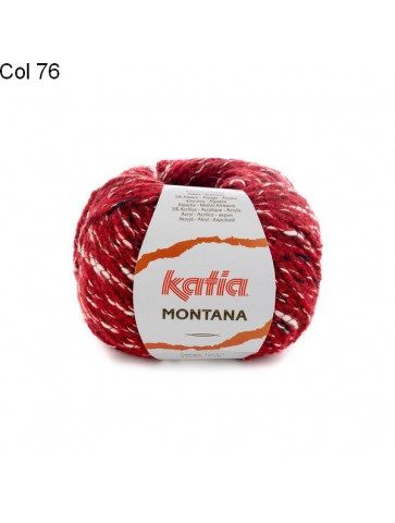 La laine Montana de Katia est un fil constitué de 32% laine, 22% de coton, 21% de polyamide, 15% de viscose, 5% d'acrylique et 5% d'alpaga, Un assemblage de fibres naturelles, blanc avec d'autres couleurs d'un aspect tweed et très doux à porter.