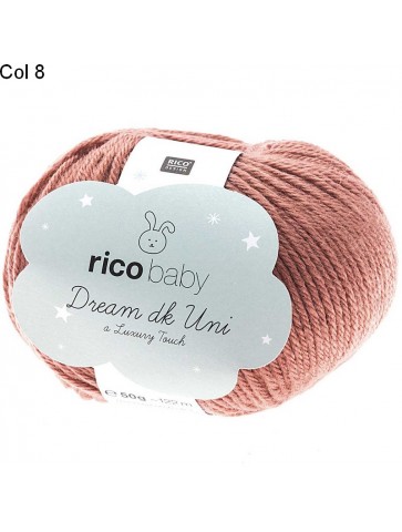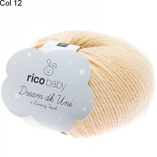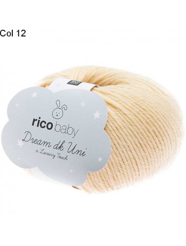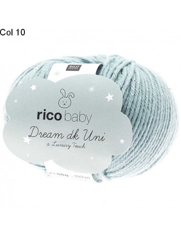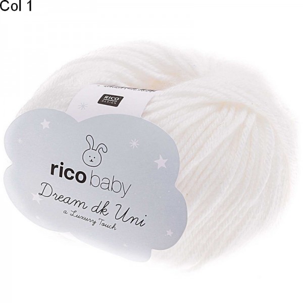 La laine Rico Design Baby Dream dk Uni a Luxury Touch est un fil constitué de 50% d'acrylique et 50% de polyamide. Un fil uni torsadé ultra doux. Pour un ouvrage moelleux et douillé.