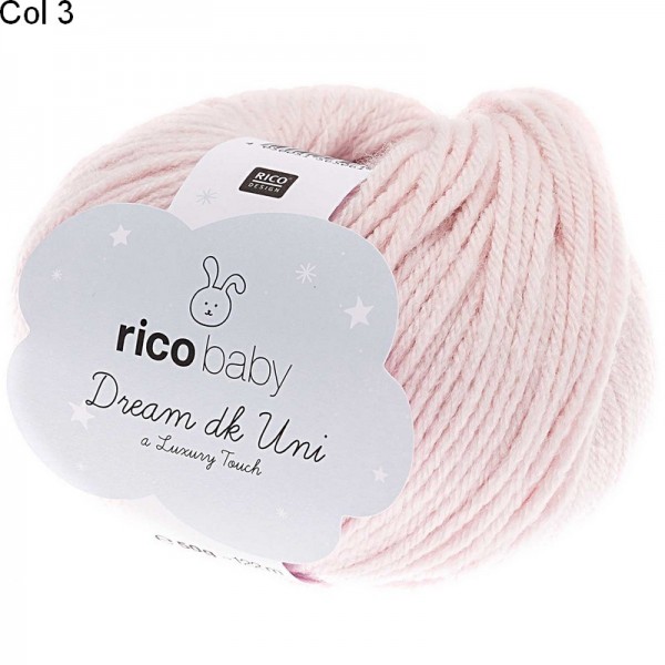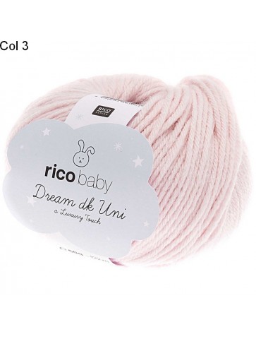 La laine Baby Dream dk Uni a Luxury Touch de Rico Design est parfaite pour tricoter et crocheter couverture, bonnet, combinaison, gigoteuse, pull, veste et gilet pour bébé.