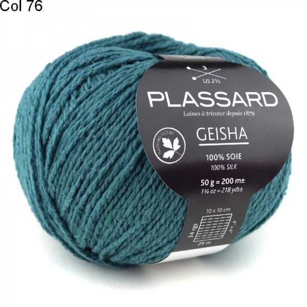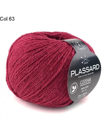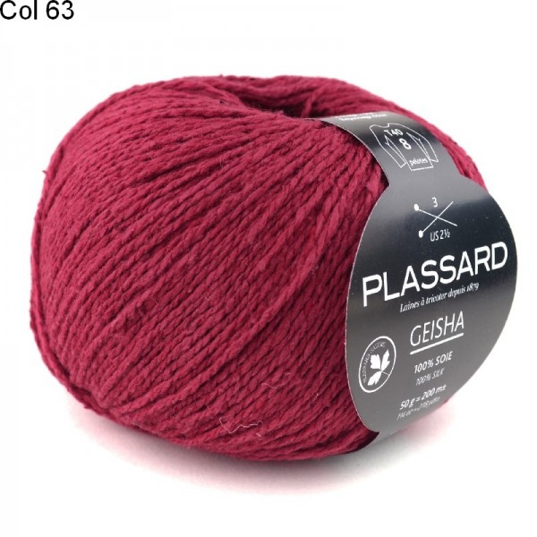 La laine Plassard Geisha est un fil constitué de 100% de soie. Un superbe fil torsadé uni en matière noble. Pour un tricot soyeux et super chic à porter.