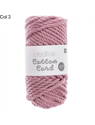 La laine Rico Design Creative Cotton Cord est un fil constitué de 100% de coton. Un fil de coton de 5mm. Pour réaliser des macramés, il peut se détorsader pour le peigner.