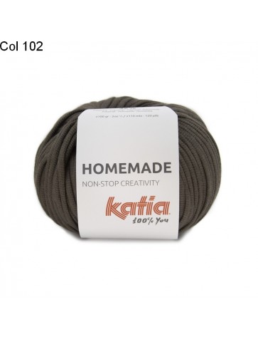 La laine Katia Coton Homemade est un fil constitué de 68% de coton et 32% de polyamide. Un fil chaînette plate tubulaire unis rempli de polyamide . Gros fil léger et moelleux.