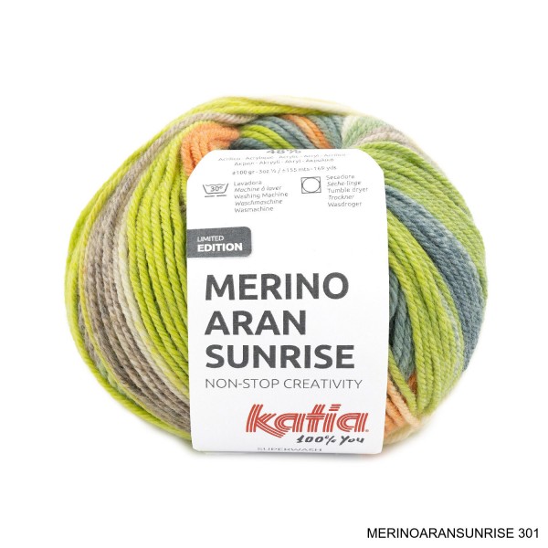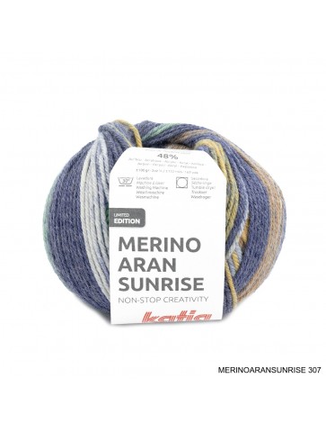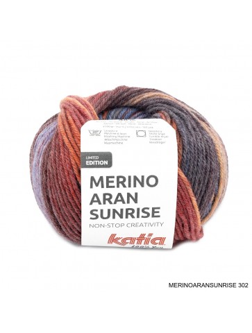 laine KATHIA MERINO ARAN SUNRISE est une laine composé de 52 % merino et 48 % acrylique