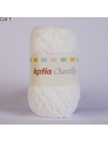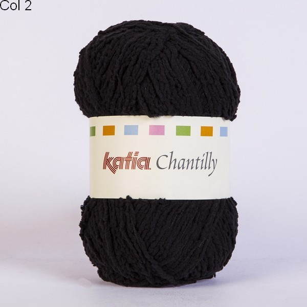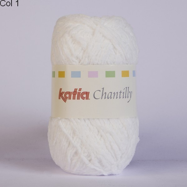 La laine Katia Chantilly est 100% polyamide. Ne peluche pas. Elle se tricote avec des aiguilles: 3 ou 3,5
