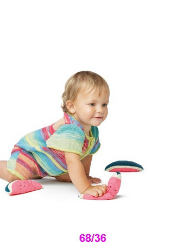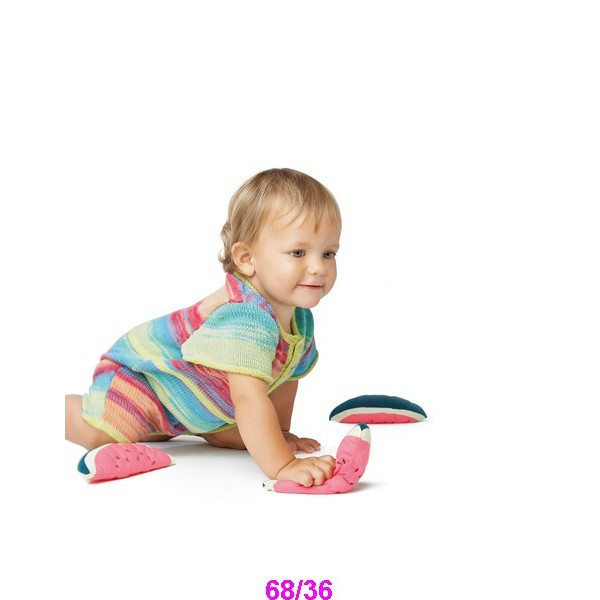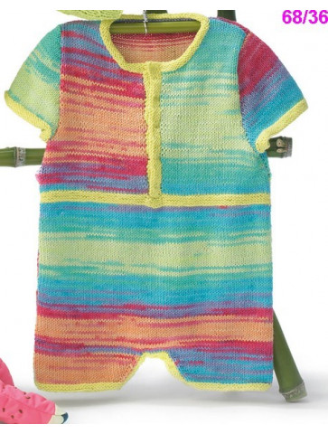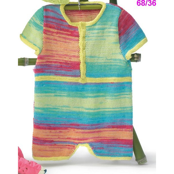 Barboteuse réf. 68/36 tricoté en Laine Katia Coton Candy Col 665 et Mississippi 3 Col 759