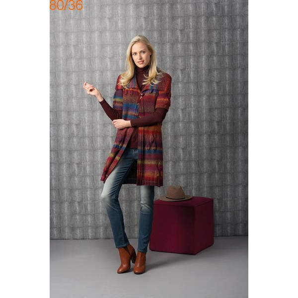 Ponts utilisés: Point jersey endroit et envers, côtes 2x2, point fantaisie et Rayures