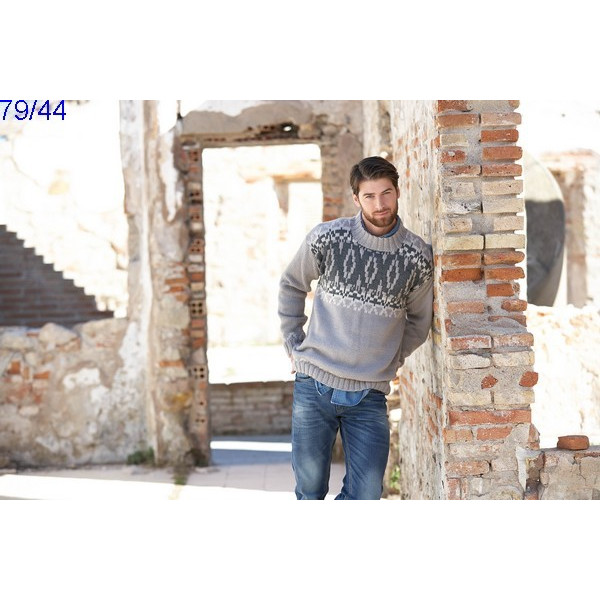 Pull Homme réf. 79/44 tricoté en Laine Katia Merino aran Col 12, 14 et 11 ou Merino sport Col 400, 402 et 31