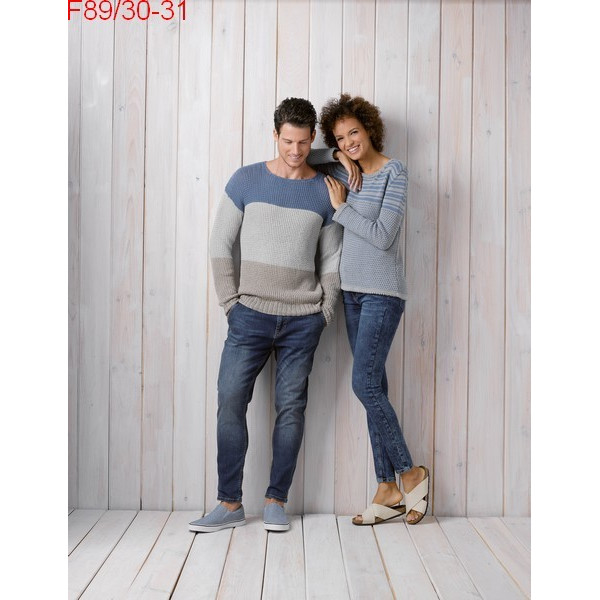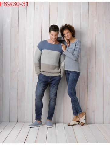 Pull femme réf. F89/31 tricoté en Laine Katia coton Cotton Stetch Col 27 et 28