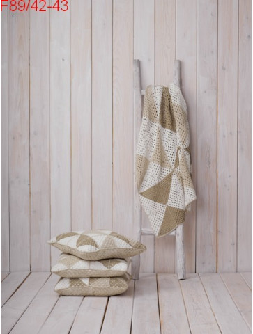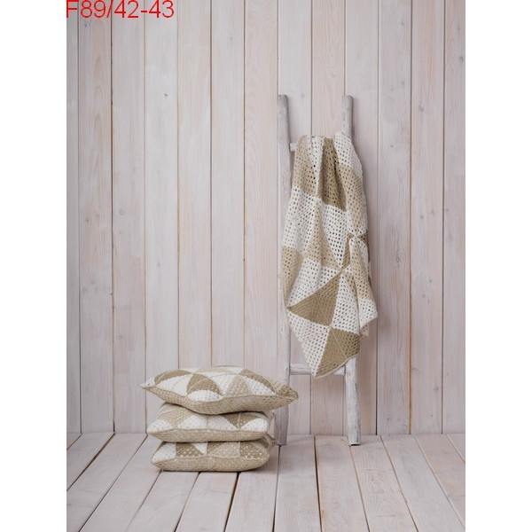 Coussin en déco réf. F89/42 crocheté en Laine Katia coton Linen Col 1, 7 et 11