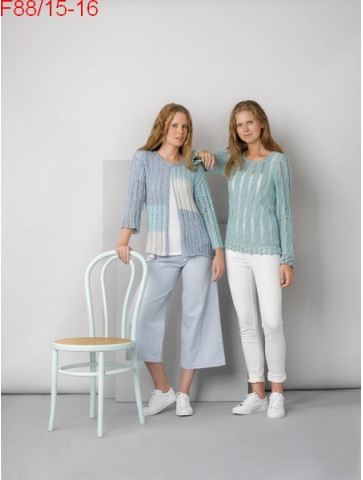 Gilet femme réf. F88/15 tricoté en Laine Katia coton Big Alabama Col 28, 27 et 30