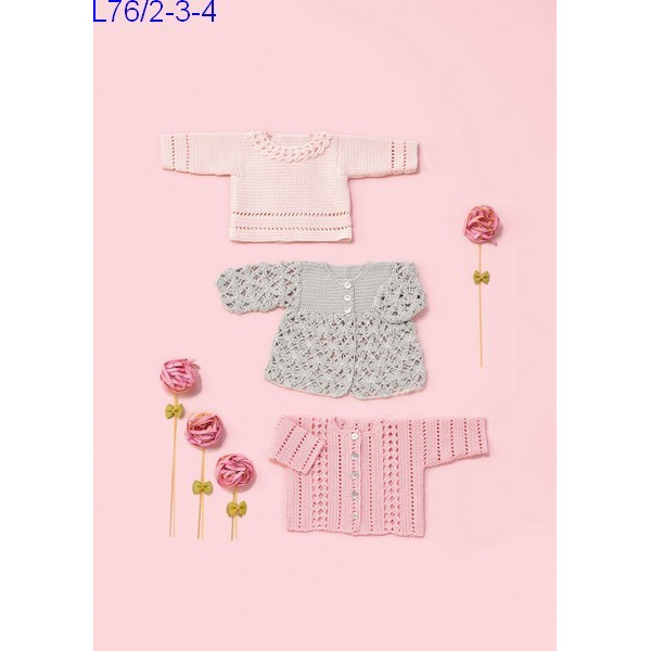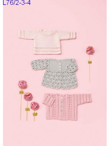 Veste bébé réf. L76/3 crochetée en Laine Katia coton Cablé 5 Col 26