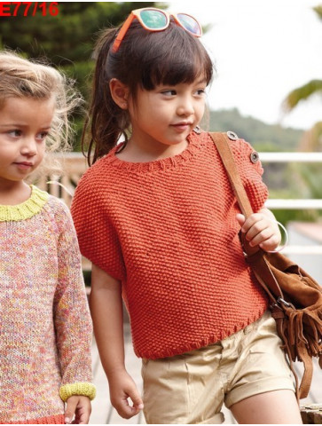 Pull fille réf. E77/16 tricoté en Laine Katia coton Alabama Col 44