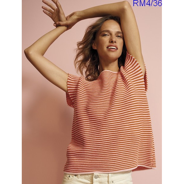 Top femme réf. RM4/36 tricoté en Laine Rico Design Essentials Merino DK Col 02 et 74