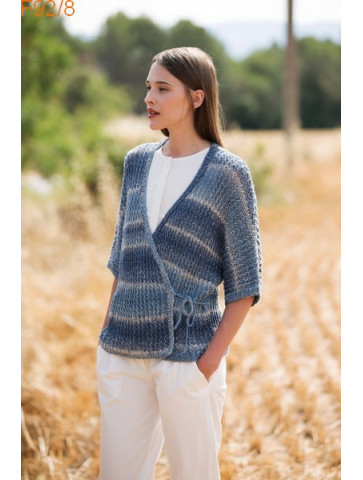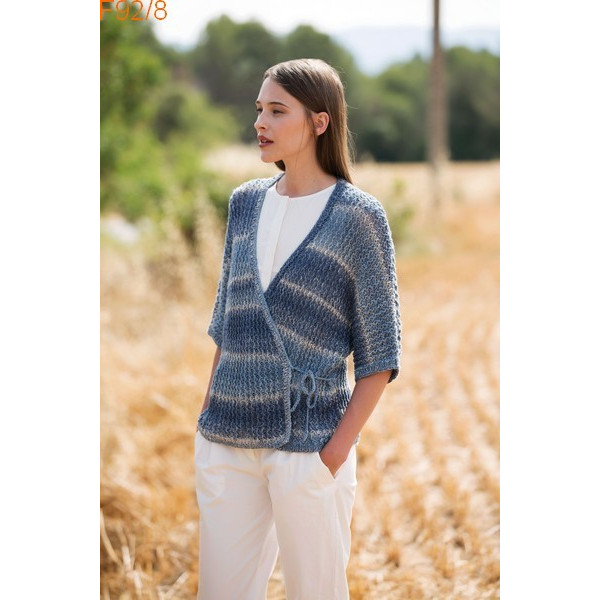 Veste femme réf. F92/8 tricotée et crochetée en Laine Katia coton Oceania Col 65