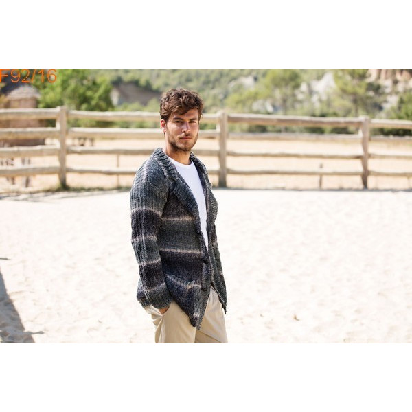 Veste homme réf. F92/16 tricotée en Laine Katia coton Oceania Col 67