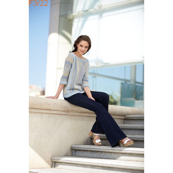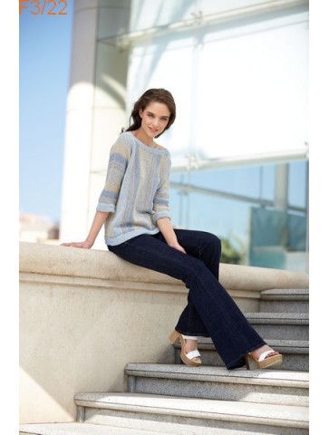 Tunique à rayure à manches 3/4, elle se tricote en un seul morceau et se réalise à l'horizontale.