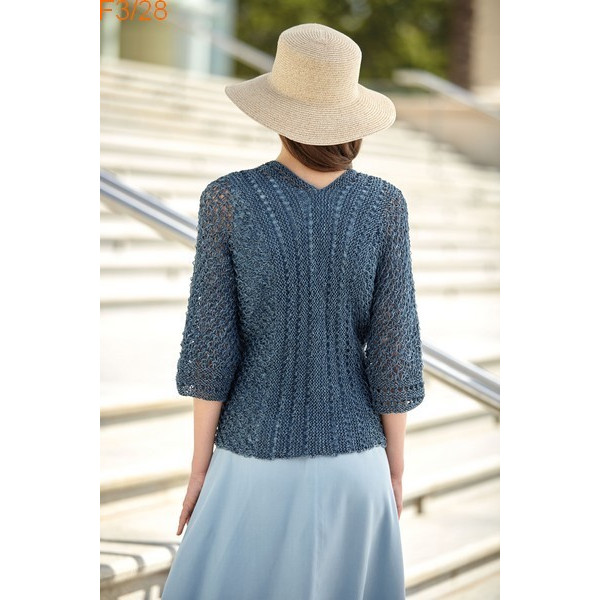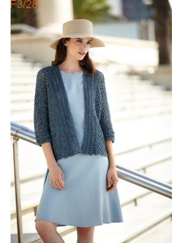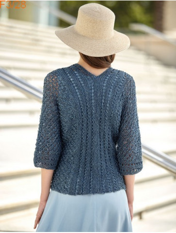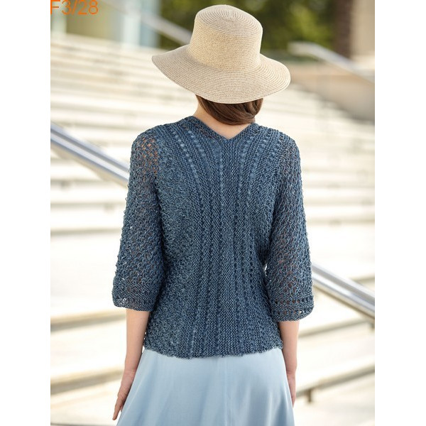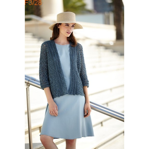 Veste à manches 3/4, sans boutonnage et tricoté en un seul morceau avec de très jolis points fantaisies.