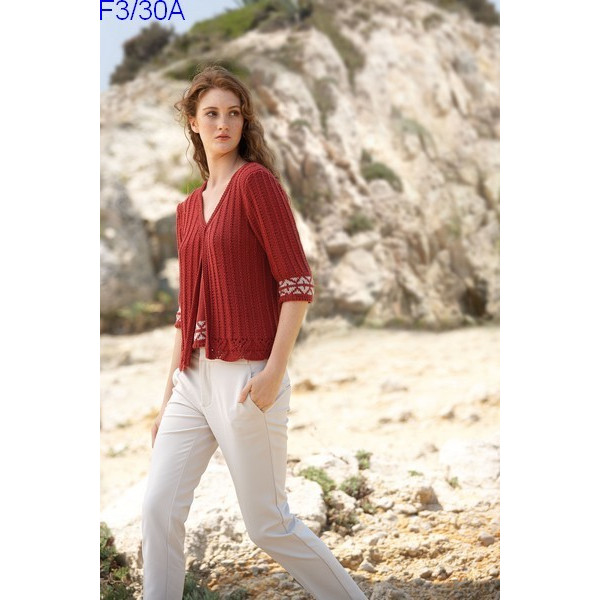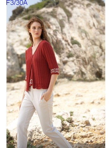 Gilet à manches 3/4 avec un joli jacquard en bas des manches. Joli ensemble avec le débardeur F3/30
