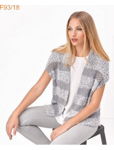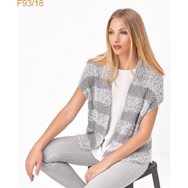 Veste femme réf. F93/18 tricotée en Laine Katia coton Oasis Col 72 et Ibis Col 76