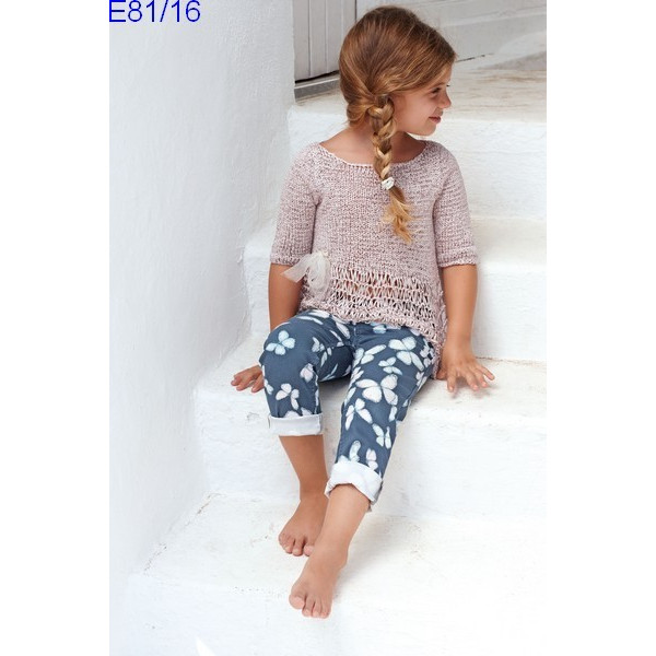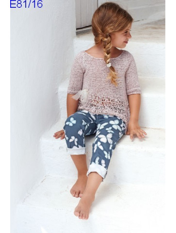 Pull fille réf. E81/16 tricoté en Laine Katia coton Singapur Col 90