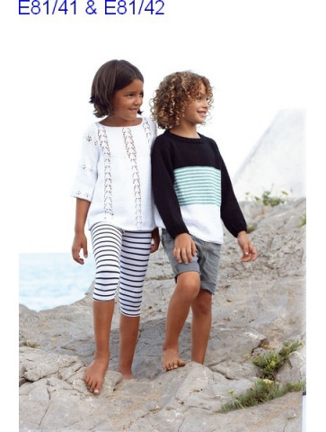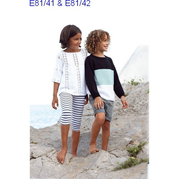 Pull garçon réf. E81/42 tricoté en Laine Katia coton Fair Cotton Col 2, 16 et 1