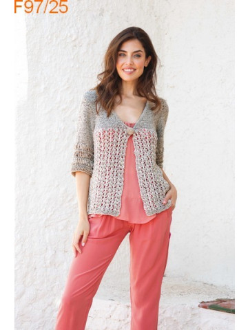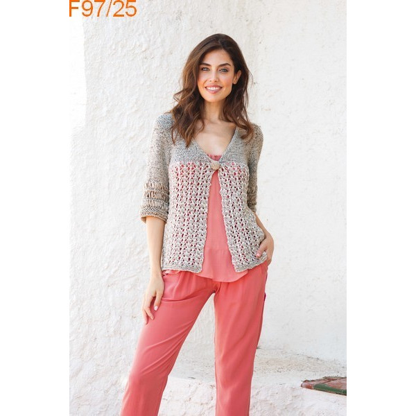 Veste femme réf. F97/25 tricotée en Laine Katia coton Hawaii Col 103 et Mississippi 3 Col 312