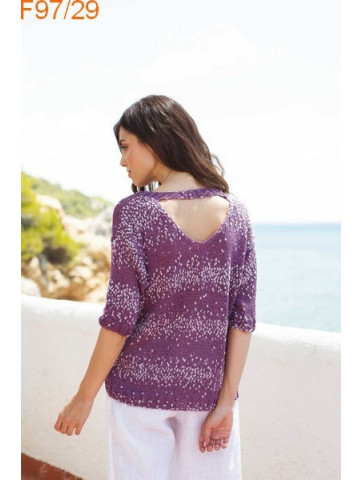 Tunique à manches 3/4, en V dans le dos et ouverte en dessous de la poitrine. Facile à réaliser et sympa pour l'été.
