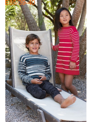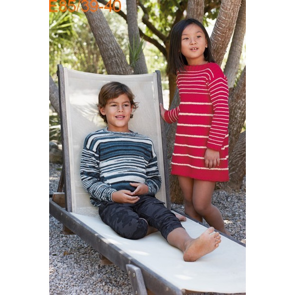 Pull garçon réf. E85/39 tricoté en Laine Katia coton Bora Bora Col 52 et 102