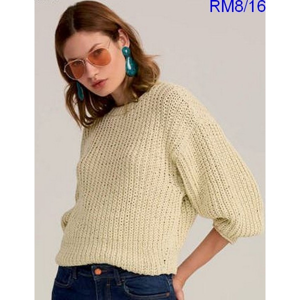 Pull femme réf. RM8/16 tricoté en Laine Rico Design Coton Fashion Cotton Ribbon Chunky Col 2