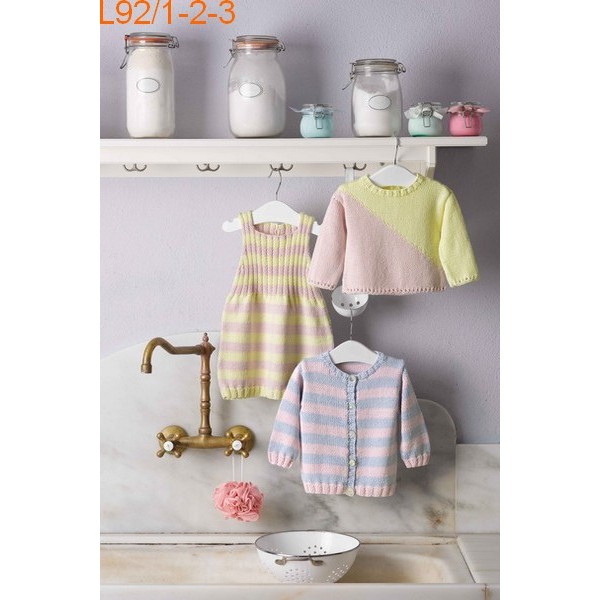 Robe bébé réf. L92/3 tricotée en Laine Katia coton Seacell Cotton Col 102 et 104