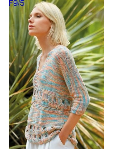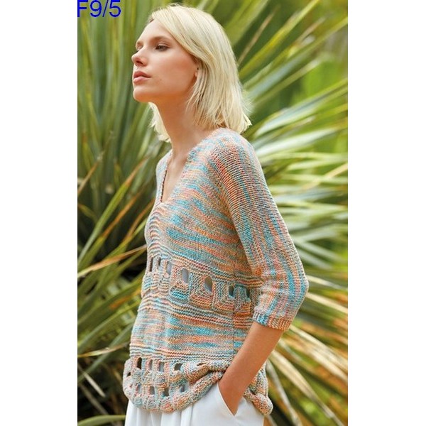 Pull ajouré à manches 3/4, col en V, aux couleurs d'été.