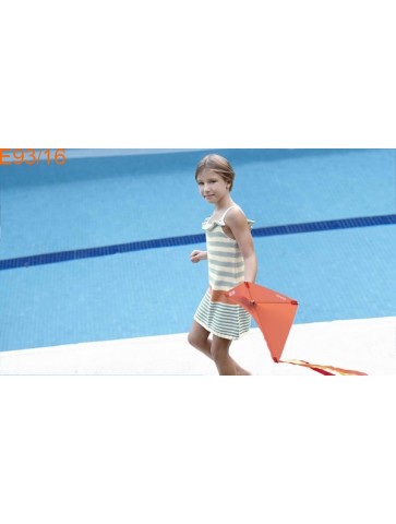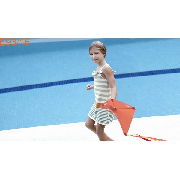 Robe fille réf. E93/16 tricoté en Laine Katia coton Seacell Cotton Col 101, 108, 110 et 111