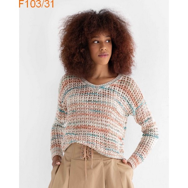Pull Femme réf. F103/31 tricoté en Laine Katia coton Fair Cotton Hand Dyed Col 700